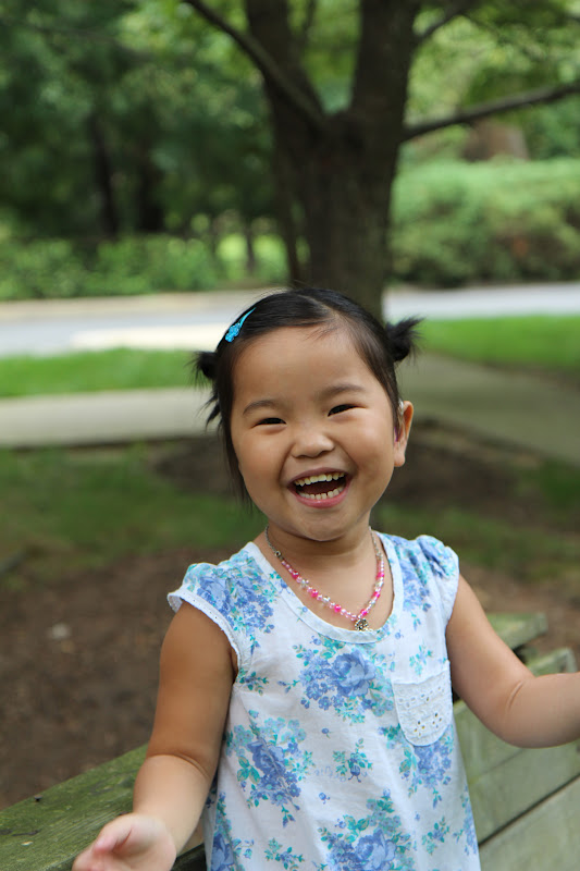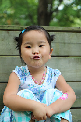 Little M (holding her purse, and three stuffed animals): Mommy, can you help me go potty? My hands are just too full.
