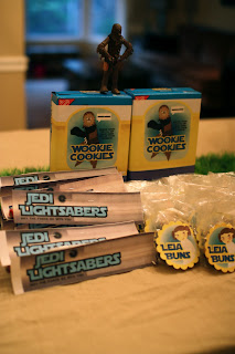 The wookie cookies are just chocolate chip teddy grahams that I taped the graphic to.