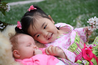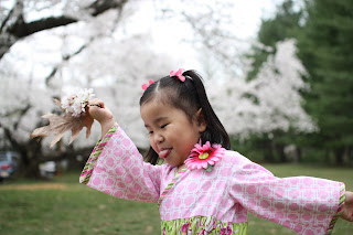 Oh so so cute, I want to live by cherry blossoms! I agree, I LOVE her dress. Precious!