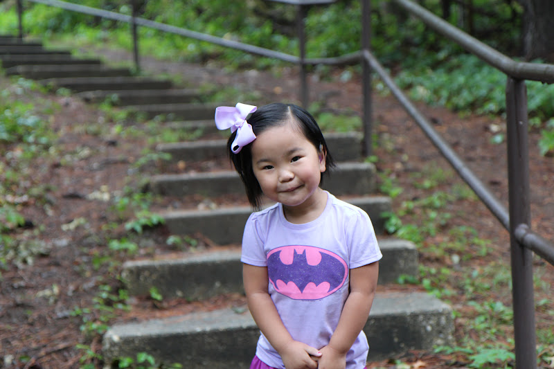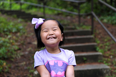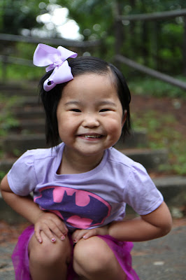 Little M has no idea what a movie release date is…but she looks very cute in her batman shirt. (and something must have happened that was quite funny…)